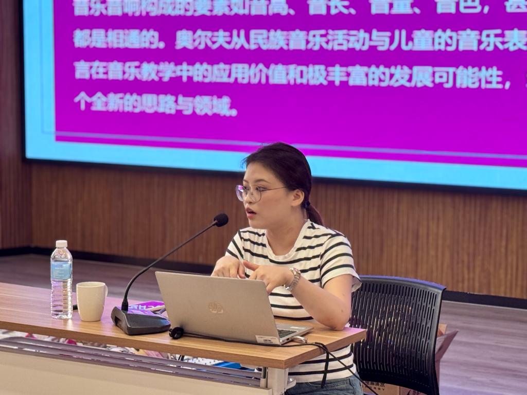 本次培训活动紧密围绕幼儿歌曲即兴弹唱的核心要点展开,充分结合幼儿音乐教育的实际需求,设置了丰富多样的实战课程内容。培训伊始,刘永佳老师以“幼儿歌曲即兴弹唱实战训练”为主题进行开篇分享,深入剖析了即兴弹唱在激发幼儿音乐兴趣、培养幼儿节奏感和创造力方面的关键作用,让在场的老师们对培训主题有了更深刻的认识。