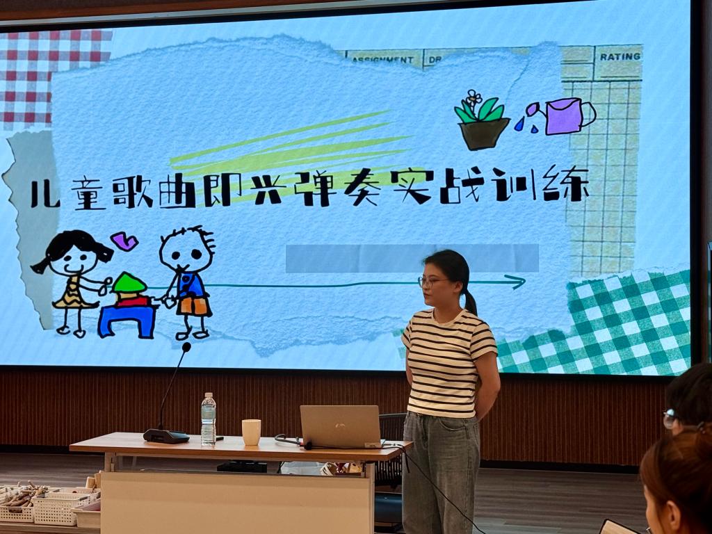 为进一步提升教师的专业技能水平,强化幼儿音乐教育的实践能力,2025年9月18日上午,一场主题为“幼儿歌曲即兴弹唱实战训练”的专题培训活动在太仓市浏河镇幼教中心东方幼儿园举行。本次活动邀请了南京ART儿童工场音乐组组长刘永佳老师进行现场培训,中心空班教师参与本次活动。