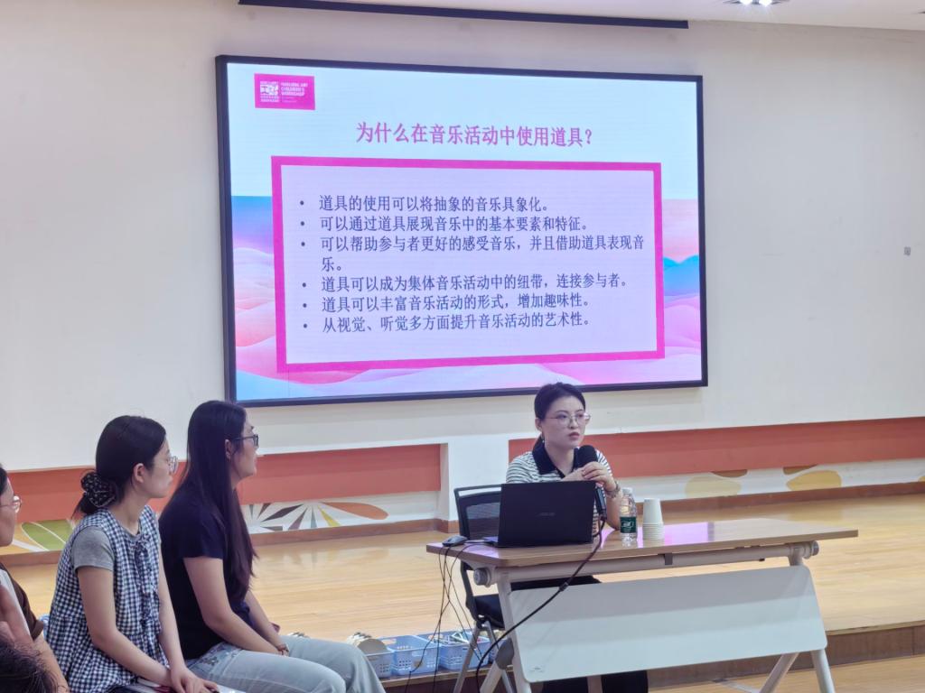 2025年9月19日上午,太仓市浏河镇幼教中心在东方幼儿园多功能室,成功开展 “幼儿音乐活动中创意道具的运用” 专题讲座。讲座由刘永佳主讲,中心行政人员及空班教师全员参与,旨在帮助教师掌握创意道具在幼儿音乐活动中的运用方法,提升教学质量。