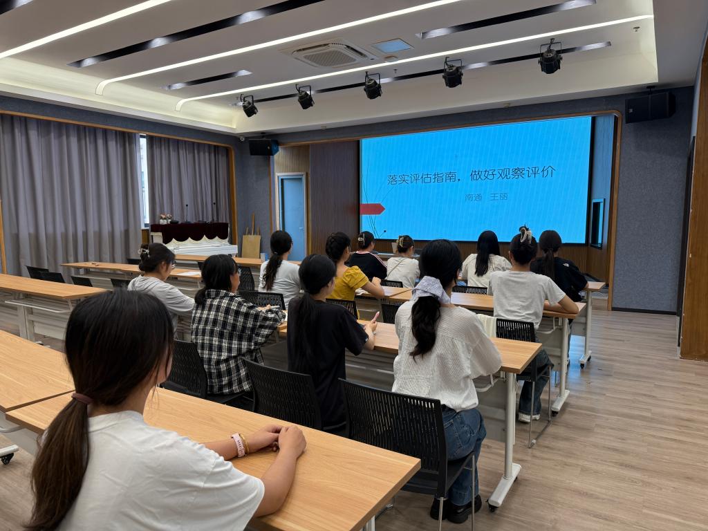 为深入理解并践行国家教育评估指南的精神,全面提升教师观察与评价的专业能力,2025年9月29日下午,太仓市浏河镇幼教中心进行了主题为“落实评估指南,做好观察评价”的专题培训活动。本次活动邀请了专家王丽老师进行讲座培训,中心内空班教师参加。