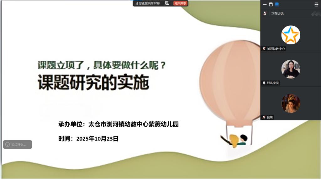 为解决教师在课题立项后普遍面临的“如何具体推进”的实践困惑,提升教育科研的规范性与实效性,2025年10月23日下午,太仓市浏河镇幼教中心再次通过线上平台,面向全体教师组织了题为“课题立项了,具体要做什么呢?”的理论课程校本研修。本次活动由叶惠敏老师主讲,系统构建了从立项到结题的完整研究闭环,为教师们提供了清晰、可操作的行动指南。