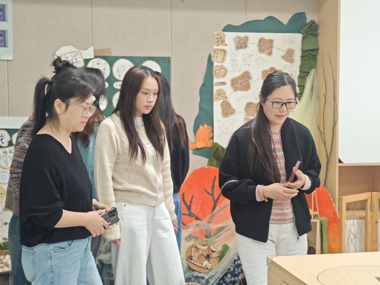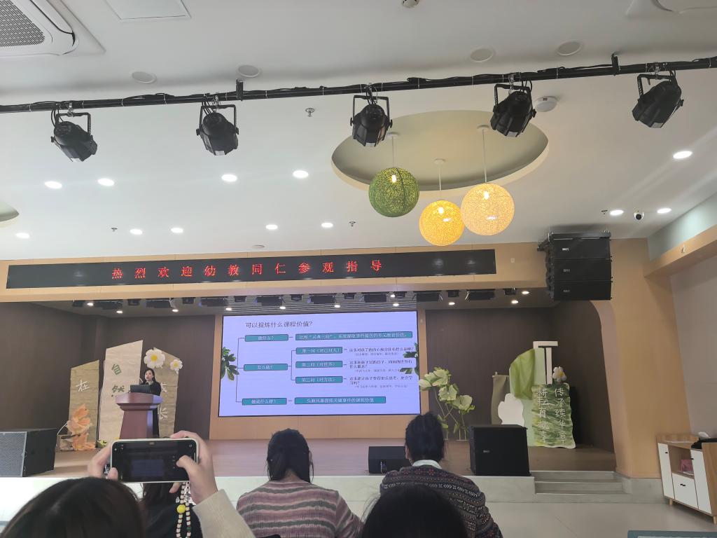 活动中,教师们先参观了园所生态环境,随后聆听计彩娟老师《从“何以读懂”到“如何落地”:解码儿童活动中心的课程开发之路》专题讲座,学习了“事件白描—意义初探—价值深挖—目标转化”四步课程开发法及“1+N”儿童海报等实操工具。下午的生态游戏场建构分享,系统解析了自然、生活、生产三维游戏场的构建逻辑与实施策略。《拯救大白鹅》《留住桂花香》等课程故事,生动展现了幼儿在真实情境中自主探究、协作成长的过程。