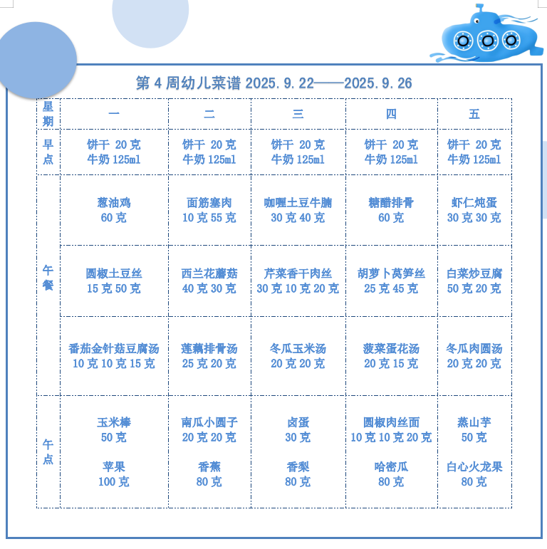 滨江幼儿园2025-2026第一学期第4周幼儿食谱