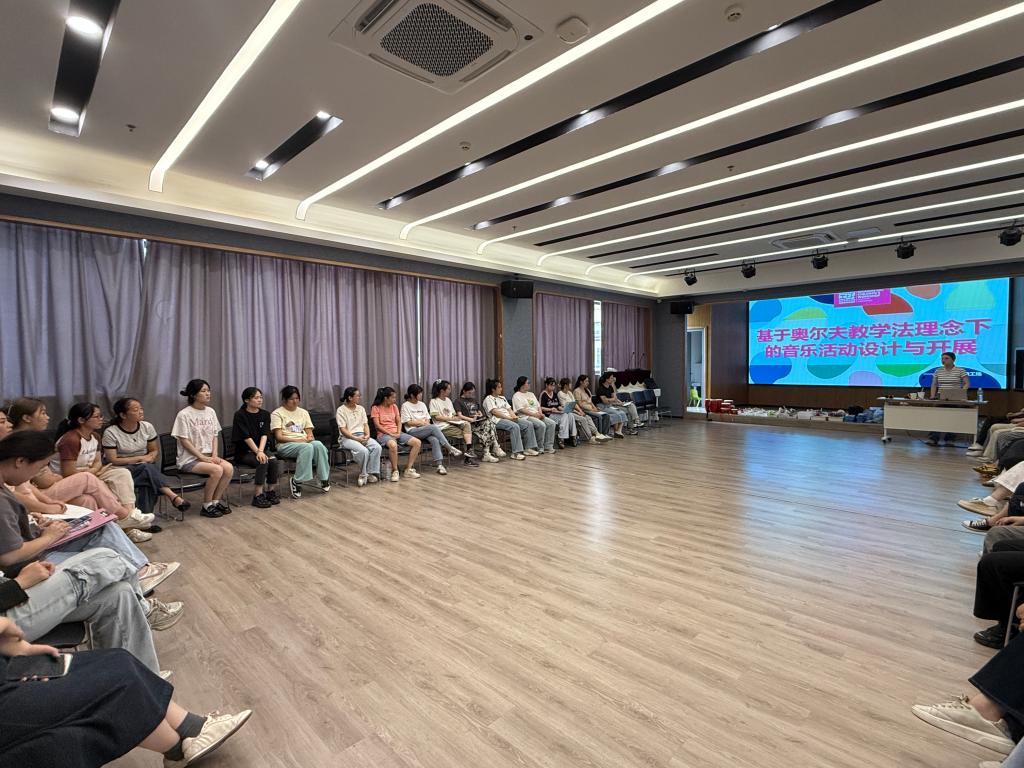 为深入贯彻奥尔夫教学法教育理念,提升幼儿教师在不同年龄段教学活动中的实践能力,太仓市浏河镇幼教中心于2025年10月16日上午在明德幼儿园的多功能进行了以“奥尔夫教学法理念下的托、小、中、大活动案例分析”为主题的培训活动。本次活动邀请了南京ART儿童工场音乐组组长刘永佳老师进行讲座培训,中心内空班老师参加。